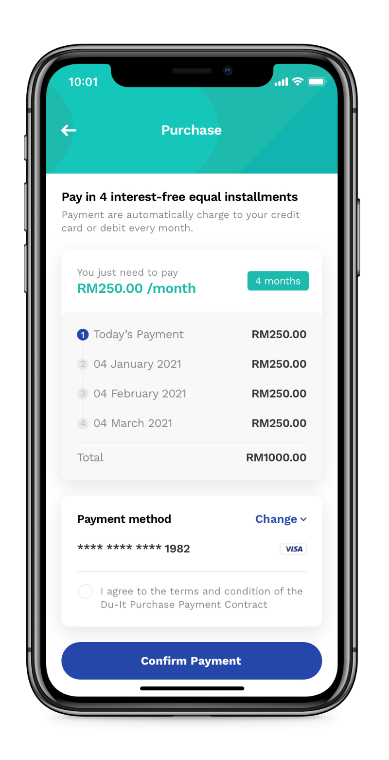 With no extra charges or hidden costs to the users when paid on time. Users can track their spending, manage their dues and opt to make early payments in real time using du-it.