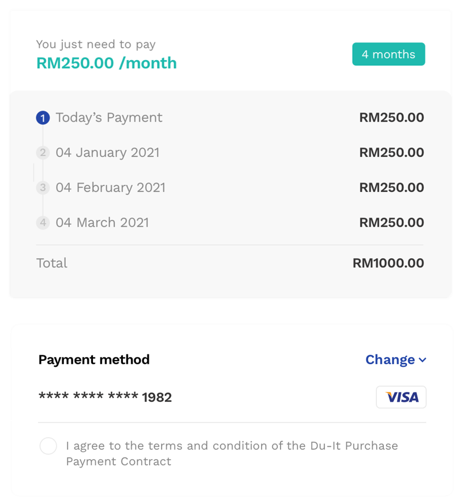You can boost your sales with du-it’s white-label BNPL solution by providing your customers the freedom to divide their payments into 4 equal interest-free instalments